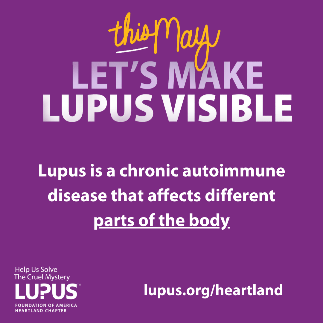 - May is Lupus Awareness Month! Join me and Make Lupus Visible by taking action and visiting lupus.org/heartland. Learn more about this cruel and mysterious disease and find tools and resources to join the fight against lupus.