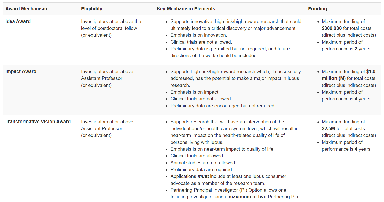UPDATE: The Department of Defense has posted the 2023 funding opportunities through the Lupus Research Program.